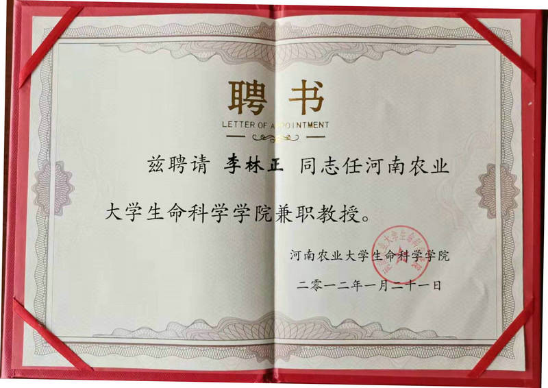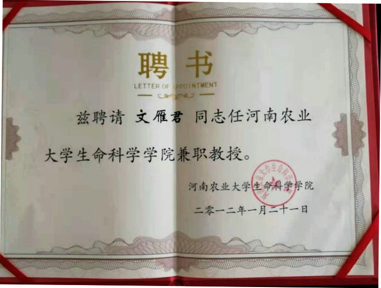 河南農(nóng)業(yè)大學(xué)生命科學(xué)學(xué)院聘請(qǐng)文雁君、李林正為兼職教授