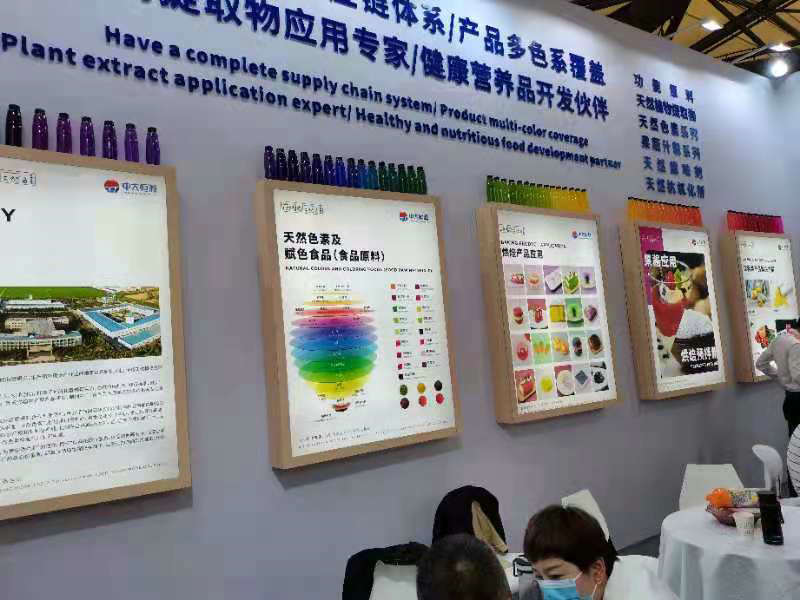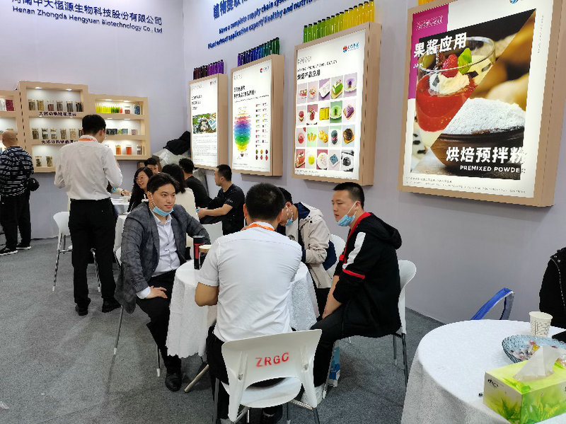 2021年4月27-30日,河南中大恒源生物科技股份有限公司參加在上海新國(guó)際博覽中心舉辦的第23屆中國(guó)國(guó)際焙烤展覽會(huì)。公司以“擁有完善的供應(yīng)鏈體系,產(chǎn)品多色系覆蓋,植物提取物應(yīng)用專(zhuān)家,健康營(yíng)養(yǎng)品開(kāi)發(fā)伙伴”為主題,展出了健康食品原料、健康保健產(chǎn)品、天然色素及賦色食品、烘培產(chǎn)品、糖果/巧克力產(chǎn)品、飲料類(lèi)產(chǎn)品及應(yīng)用解決方案。展廳內(nèi)人頭攢動(dòng),客流不斷,或饒有興趣的品評(píng)產(chǎn)品,或深入洽談合作事宜。